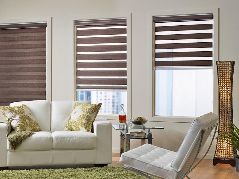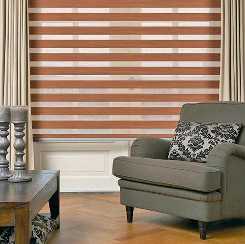 If you are looking for an environment friendly blinds then Zebra blinds are meant for you. They are madeup of horizontal lined fabrics running parallel to each other creating a dimming and opening effect. They are very appreciated blinds of current era. The simplicity and style are highlighted by the shear effect.